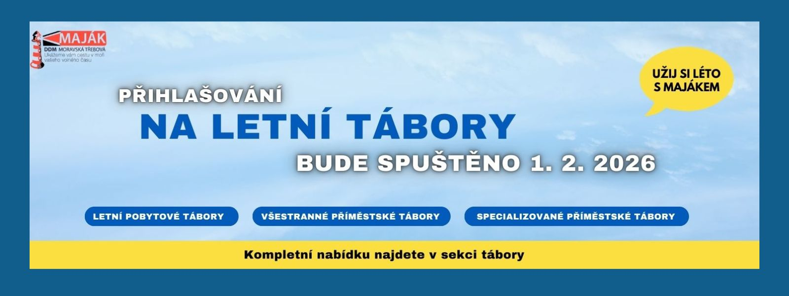 V Domě dětí a mládeže už intenzivně pracujeme na nabídce letních táborů pro léto 2026. Chystáme nejen osvědčené a oblíbené tábory, na které jsou děti i rodiče zvyklí, ale také několik novinek, které naši letní nabídku zase o kousek posunou dál.