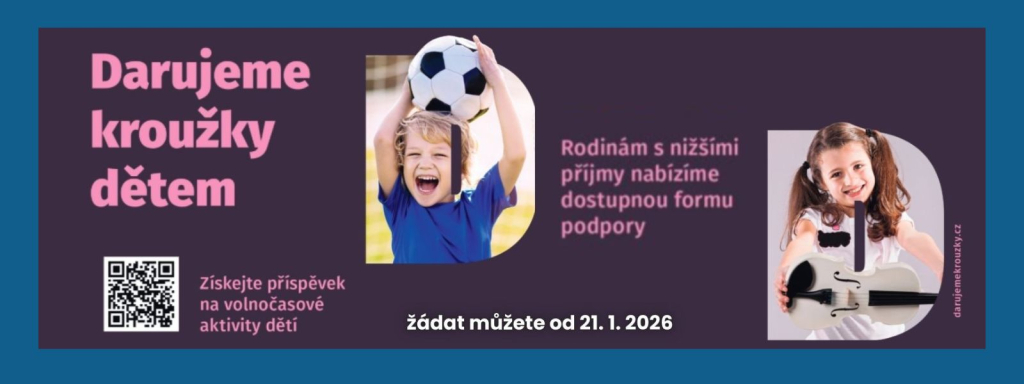 I v letošním školním roce jsme se zapojili do projektu, díky kterému mohou rodiny, které jsou v tíživé finanční situaci, získat podporu na aktivity dětí a mládeže ve věku 3 - 18 let. Žádosti na 2. pololetí budou spuštěny od 21. ledna 2026.