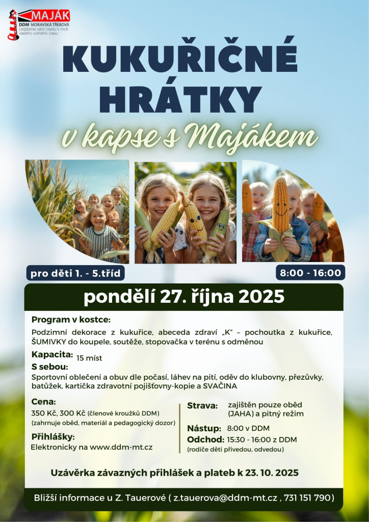 Přihlášení možné na tomto odkaze:https://www.ddm-mt.cz/akce/1645-kukuricne-hratky-v-kapse-s-majakem